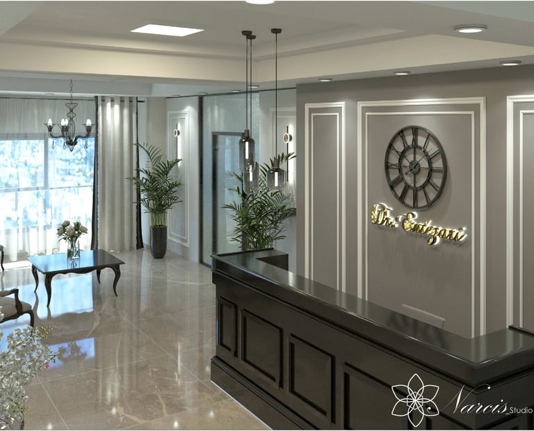 This project involved transforming an open office space into a functional and elegant dental clinic for Dr. Entezari. The design redefined the layout into three main areas: reception, waiting area, and the clinic, while a separate room was preserved as a private office.
