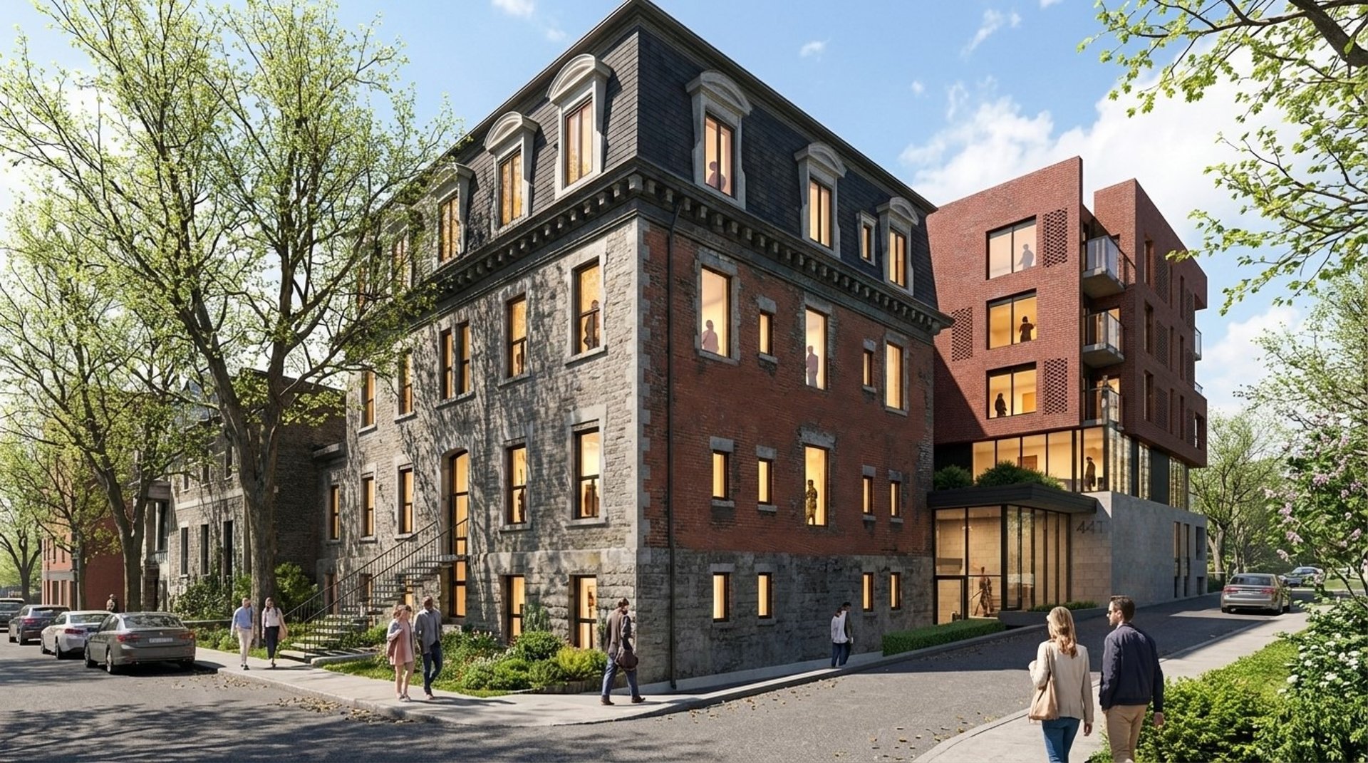 A sensitive rehabilitation and residential addition within a recognized heritage sector. The project preserves the historic façades while introducing a contemporary volume as an extention.