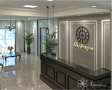 This project involved transforming an open office space into a functional and elegant dental clinic for Dr. Entezari. The design redefined the layout into three main areas: reception, waiting area, and the clinic, while a separate room was preserved as a private office.